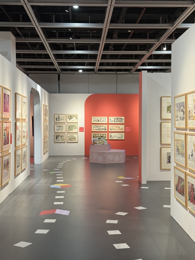 巡展分为“童思、童趣、童心”三个主题单元。参展作品题材覆盖广泛、内容丰富多元。比如,作品《仓颉造字》带领孩子探寻历史神话与远古文明的奥秘,《李爷爷的花园》引导孩子在十二生肖举办的生日盛宴中了解传统文化,《“哟嗬哟嗬”摘香蕉》则展现了父子间的默契与乐观精神。从儿童人格修养、精神塑造、品德培育,到社会人文关怀,再到人类对自然的认知、艺术的感知与人生的思索,全方位为儿童构建起立体、多元的成长认知空间。
